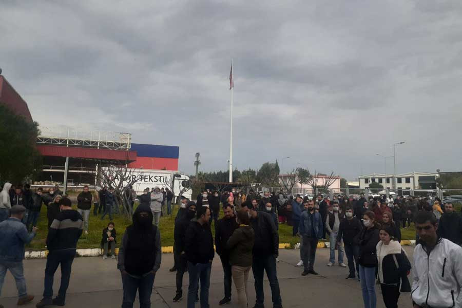 İzmir Akar Tekstil işçileri, bir işçiye Kovid-19 teşhisi konması üzerine işbaşı yapmadı. Eli sopalı bir grup işçilere saldırırken Sağlık Kurulu, ‘İş yerinde çalışmaya devam edilebilir’ dedi.