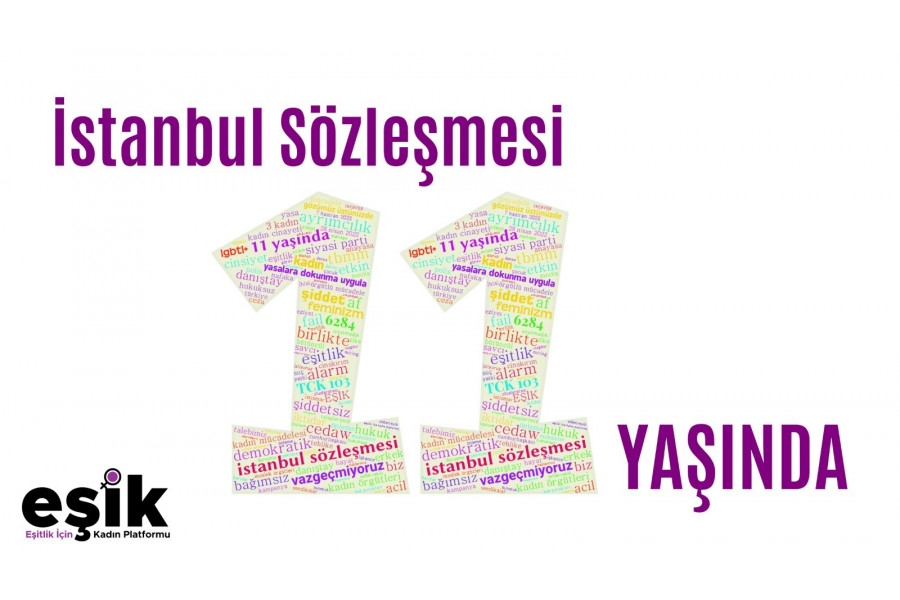 Kadına yönelik şiddetin önlenmesini amaçlayan, özellikle bunun formülünün toplumsal cinsiyet eşitliğinin sağlanmasıyla gerçekleşeceğini söyleyen İstanbul Sözleşmesi bugün 11 yaşında. Eşitlik İçin Kadın Platformu (EŞİK) İstanbul Sözleşmesi’nin 11. yılına dair açıklama yaptı.