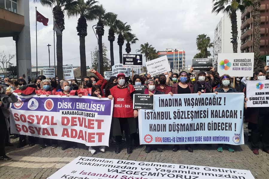 İstanbul Sözleşmesi’nden çekilme kararına ilişkin kadınlar ülkenin dört bir yanında eylemlerini sürdürürken Genel-İş İzmir 2 No’lu Kadın Komisyonu da “İstanbul Sözleşmesi’nden vazgeçmiyoruz” diyerek basın açıklaması yapmıştı. Geçtiğimiz mart ayında yapılan açıklamada Genel-İş 2 No’lu Şube Mali Saymanı Zeynep Zarıçlar, “Sarayda oturduğu yerde kendi karısı ve kızlarını koruma altına alan tek adam diktatörüne buradan zılgıtlarımızla, ıslıklarımızla ses verelim” diyerek yaptığı açıklama ifade için İzmir Güvenlik Şubeye çağrılma gerekçesi oldu.