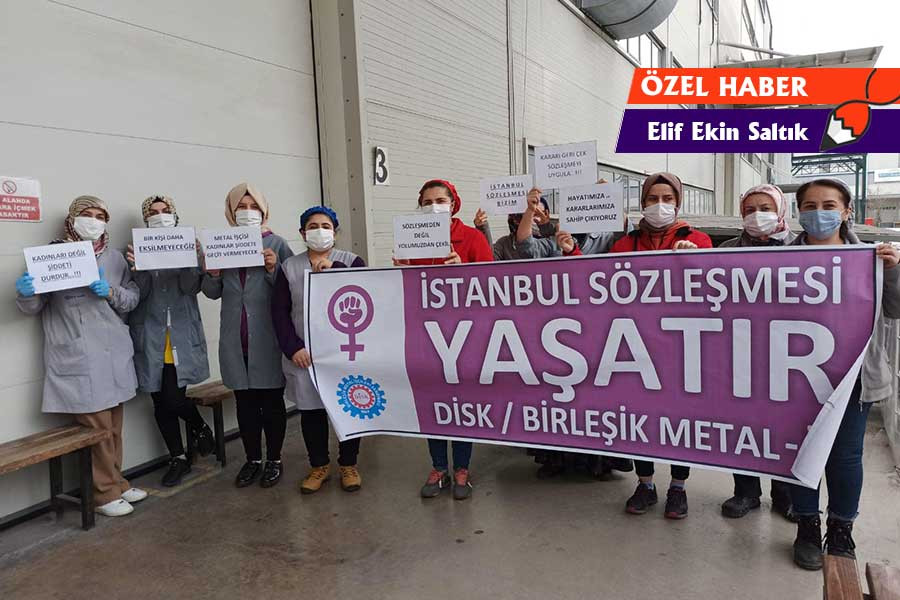 Kadın işçiler açısından değişen ve ağırlaşan bu çalışma ve yaşam koşullarının üzerine bir de haklarına yönelik saldırılar kaygıları artırıyor. İstanbul Sözleşmesi’nden bir gece yarısı kararıyla Türkiye’nin imzasını çektiğini açıklaması yurdun birçok yerinde kadınları sokaklara döktü. Kadınlar Sözleşme’den vazgeçmeyeceklerini sokaklarda haykırırken, bu öfkenin fabrikalara yansıdığını söylemek gerçekçi olmayacaktır.Gıda işçisi kadınlar içerisinde hem İstanbul Sözleşmesi’nin içeriğine dair hem de kaldırılmasına dair net bir bilgi yok. Kadın işçiler fabrikalarda Sözleşme’ye dair konuşulmadığını belirtiyorlar.Sendikalı/örgütlü fabrikalarda da İstanbul Sözleşmesi’ne dair tartışmalar sınırlı kalıyor.