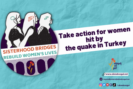 Mesai arkadaşımızın koluna girip, sıra arkadaşımızın elini tutup, komşumuzun omzuna yaslanıp yürüyelim. Kız kardeşliğimiz İstanbul’dan deprem bölgesine hayatı yeniden kurmaya köprü, hayatlarımızı eşit ve şiddetsiz olarak yeniden kazanmaya söz olsun!