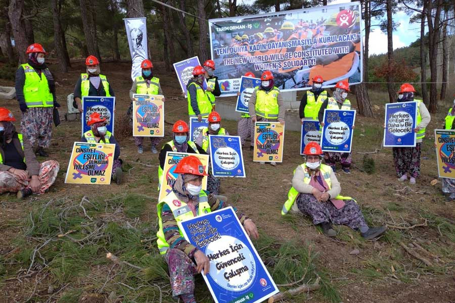 Çanakkale, Bayramiç Karıncalı’dan orman kesim işçisi kadınlar çalıştıkları alanda 8 Mart kutlaması yaptı. Kadınlar “Yaşasın 8 Mart, yaşasın kadın dayanışması!” derken yaptıkları açıklamada, “Biz kadın emekçiler olarak eşit haklara sahip olmak, özgür olmak, güvenli ve adil bir yaşam istiyoruz” dedi. Şiddetin hedefi olmak istemediklerini söyleyen kadınlar, “Belirli günlerde hatırlanmak değil, emeğimizin yok sayılmamasını istiyoruz” dedi.
