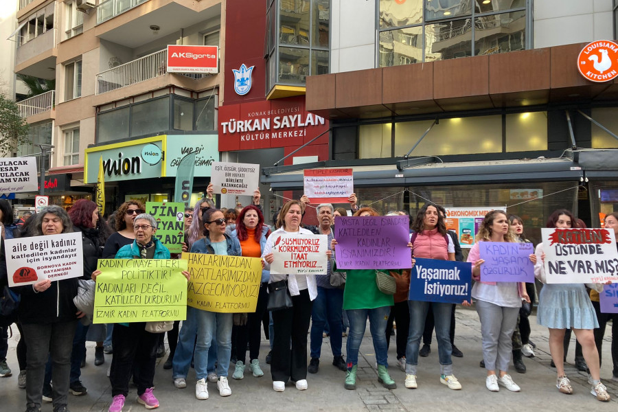İzmir Kadın Platformu artan kadın cinayetlerine ve yürürlüğüne konan gerici politikalara karşı basın açıklaması düzenledi. Alsancak Türkan Saylan Kültür Merkezi önünde bir araya gelen kadınlar, "Katledilen kadınlar isyanımızdır", "Koruma, aklama, yargıla" ve "Kadın cinayetleri politiktir" sloganlarını atarken, basın metnini ise Pınar Çetinkaya okudu.