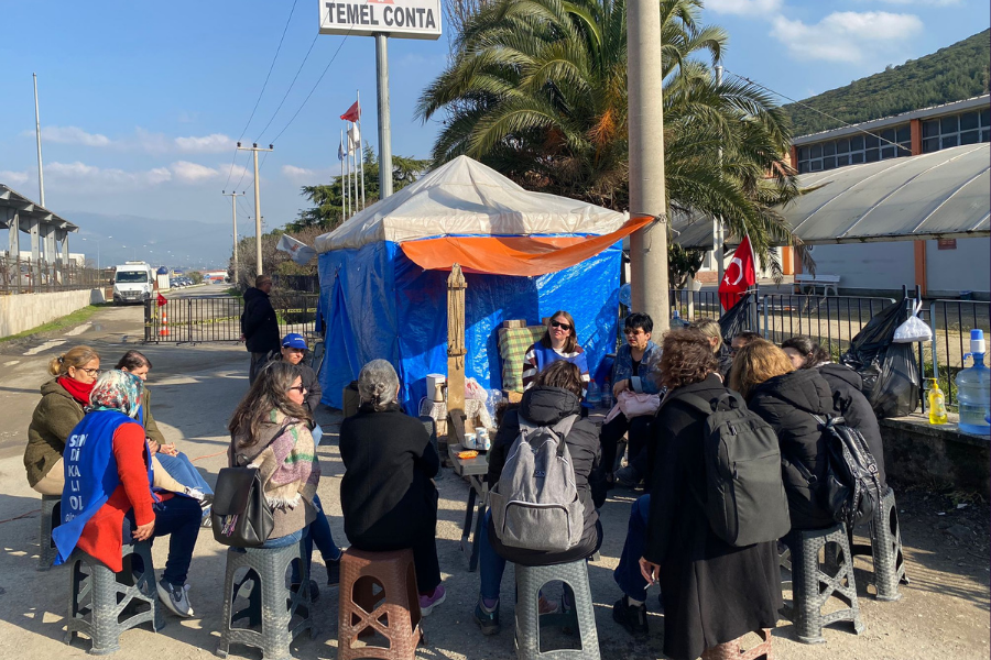 İzmir Kadın Platformu, 50 gündür sendikal hakları için grevde olan Petrol-İş Aliağa Şubesinde örgütlü Temel Conta işçilerini ziyaret etti. “Temel Conta işçisi yalnız değildir” sloganıyla fabrika önüne gelen kadınlar grevdeki işçilerle dayanışma içinde olduklarını ilettiler.