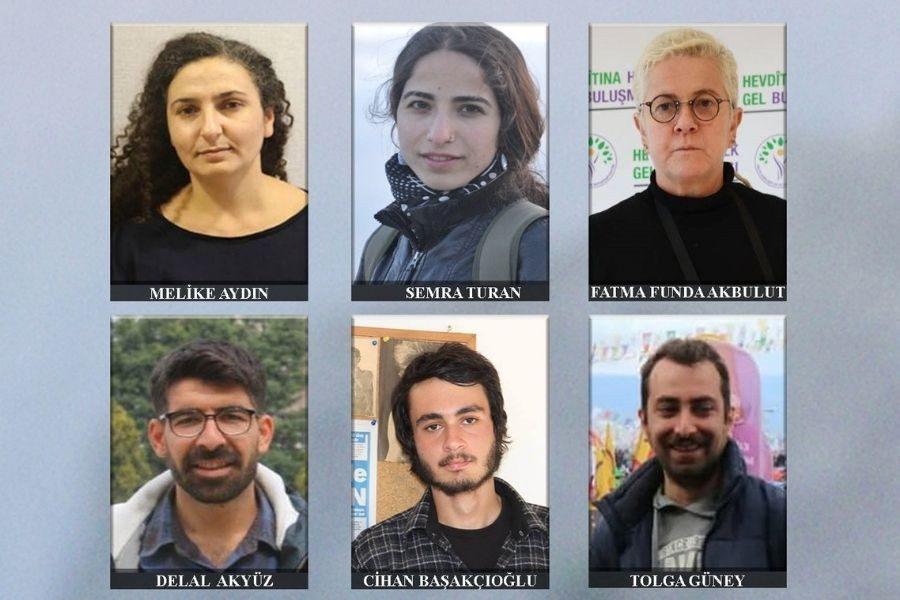 İzmir'de 13 Şubat’ta ev baskında gözaltına alınan Mezopotamya Ajansı (MA) muhabirleri Semra Turan, Delal Akyüz ve Tolga Güney, JINNEWS muhabiri Melike Aydın, Gazete Duvar Muhabiri Cihan Başakçıoğlu ile Halkların Eşitlik ve Demokrasi Partisi (DEM Parti) basın çalışanı Fatma Funda Akbulut, emniyetteki işlemlerinin ardından savcılığa sevk edildi. İzmir Bayraklı Adliyesi’ne getirilen gazeteciler, savcılık tarafından ifadeleri dahi alınmadan Sulh Ceza Hakimliği'ne sevk edildi. Gazetecilerin hakimlik ifadeleri başladı