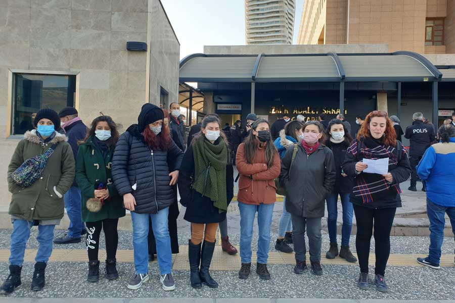 İzmir’de, İstanbul Sözleşmesi’nin iptal edilmesine karşı 5 Ağustos 2021 tarihinde Alsancak ÖSYM önünde yapılan eylemde gözaltına alınan 18 kadının yargılandığı davanın ilk duruşması bugün İzmir Adliyesi 44. Asliye Ceza Mahkemesinde görüldü.