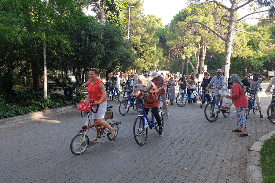 Konak Kent Konseyi Mülteci Meclisi, Dünya Mülteciler Günü kapsamında Kültürpark’ta etkinlik düzenledi. Meclis üyeleri ilk olarak mülteci kadınlarla “Pedallarım barış için” talebiyle bisiklet turu yaptı.