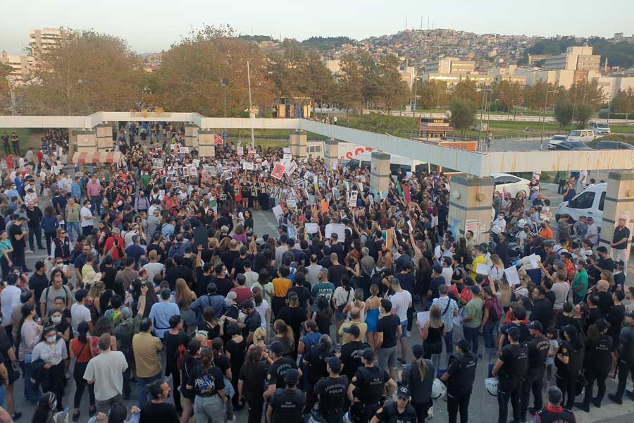 Öztürk, “İran'dan Türkiye'ye, faşist otokratik rejimlere, bedenlerimizi ve yaşamlarımızı hedef alan ahlak dayatmalarına karşı eşitlik ve özgürlük isyanını büyütüyoruz. İran sokaklarında kitleselleşen Jin, Jiyan, Azadi sloganını İzmir'den yükseltiyoruz. İranlı kadınların ve İran halkının molla rejimine karşı verdiği özgürlük mücadelesinin yanındayız. İstanbul Sözleşmesi’nden vazgeçmiyoruz, LGBTİ+lara dini propagandalar eşliğinde yönelttiğiniz nefret söylemlerine karşı, ayrımcı ve ötekileştirici politikalarınıza karşı eşitlik için mücadele etmeye devam edeceğiz” diye konuştu.