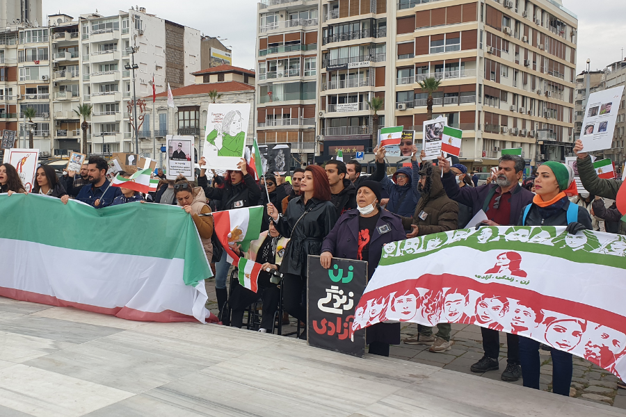 İzmir’de yaşayan İranlılar, İran’da Mahsa Amini’nin öldürülmesiyle başlayan rejim karşıtı protestolarla dayanışmak için Alsancak Gündoğdu Meydanı’nda bir araya geldi.
