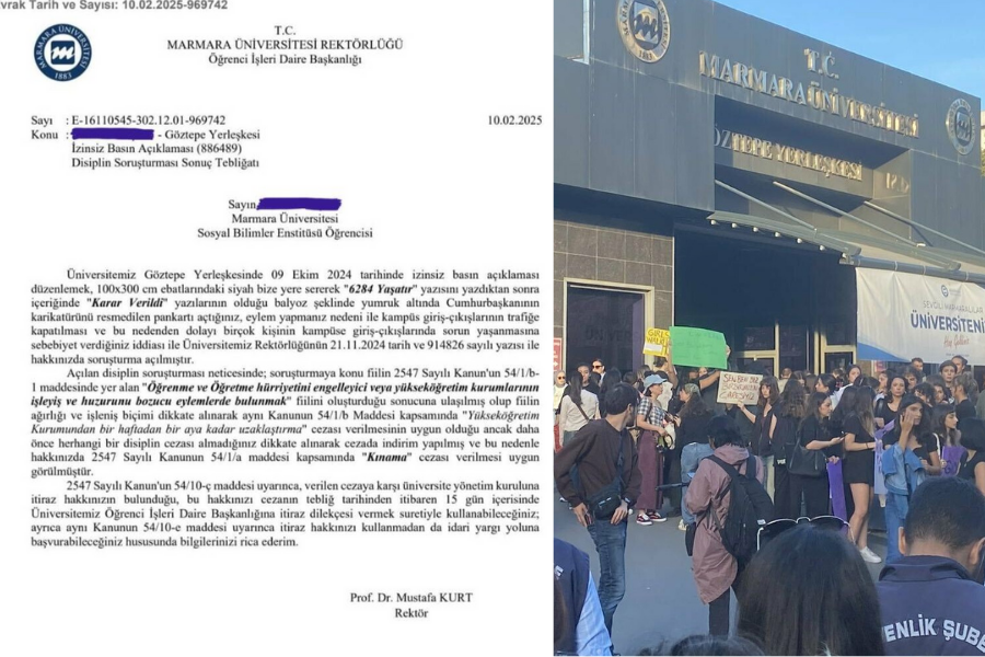 Marmara Üniversitesi Rektörü Mustafa Kurt, İkbal Uzuner ve Ayşenur Halil’in vahşice katledilmesine tepki göstermek amacıyla Göztepe Kampüsü Ana Kapı önünde eylem yapan öğrencilere "izinsiz basın açıklaması yapıp kampüs trafiğini engelledikleri" gerekçesiyle kınama cezası verdi.