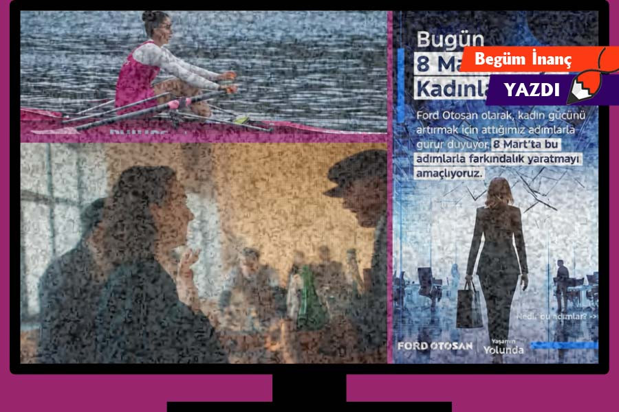 8 Mart günü sabah uyandık, bir anda tüm sosyal medyayı kaplayan “Kadınlar Günü” temalı reklamlar karşımıza çıktı. Bu reklamlara “yeni” demek doğru olmaz. Cumhuriyet’in erken dönemlerinden beri var olan reklamlar, çeşitli dergilerde ve gazetelerde zaten vardı. Değişen sadece yer aldığı platform değil aynı zamanda içeriğiydi. Erken dönemlerden 2000’lere kadar, geleneksel aile rollerini yeniden üreten, kadının ev içi işlerini hatırlatan ve hatta bu işleri daha kolay ve hızlı yapmasını sağlayan ürünlerin reklamları varken, son yıllarda her sektörden firmanın kadınları “kapsayan” reklamlarını görmek mümkün.(1) Kadınlara artık çiçek, çikolata, pırlanta gibi hediyeler almayı pazarlayan reklamlar yerini “baş kaldıran, isterse yapan” bir içeriğe bıraktı. Özellikle son yıllarda başlayan bu trendle, ulusal ve uluslararası firmalar kadınları mutfakta değil; yaşamın her alanında, vinç kullanırken, dalış yaparken, bilgisayar başında ya da sahada çalışırken, güçlü ve kendine yeten bir imajla resmediyor.