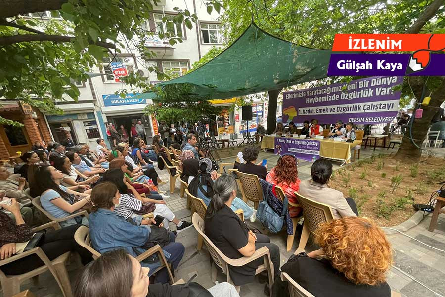 Dersim Belediyesinin, 21, 22 ve 23 Mayıs tarihlerinde “Kadın, Emek ve Özgürlük” şiarıyla düzenlediği çalıştayda 3 oturum gerçekleşti. Erkeklerin yoğunluklu olduğu kahvehanelerin bulunduğu Sanat Sokağı’nda gerçekleştirilen oturumlar, belli ki “erkekliğin kalbine” bir hançer sokma niyetindeydi. Kahvehanelerin ortasında kadın siyaseti yapmanın kadınları sokakta var etmenin sembolik bir göstergesi olduğu düşünüldüğü anlaşılabiliyordu. Fakat bu gaye, çalıştayın sağlıklı yürümesi ve kadınların bilhassa “mahrem” konularda tartışmaya katılımı gayesine baskın gelmişti. Bu nedenle de 3 gün boyunca sokağın çeşitli gündelik hareketleri kısmen de olsa sunumları sekteye uğrattı, oturumlara katılım da belki kolluk tarafından kayda alınması belki de sokak içerisinde söz almaya çekinmenin etkisiyle eksikti.