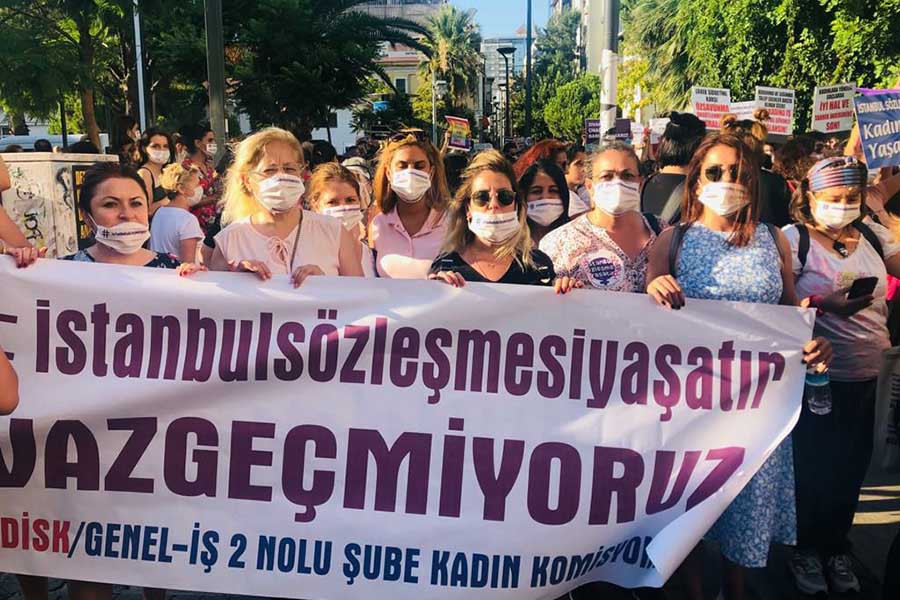 Genel İş 2 No’lu Şube mali saymanı ve Kadın Komisyonundan Zeynep Zarıçlar da kadına yönelik şiddeti meşru kılan zihniyeti eleştirdi. Zarıçlar, “Bu ülkede kadınlar tecavüze uğruyor, dövülüyor ve öldürülüyor. Bunun yanında hükümetin muhafakazarlık tutumuyla kadınları eve kapatma arzusu ve erkek egemen bir ülke inşa etmeye çalışmasıyla kadına şiddet hız kesmeden devam etmekte. Bu yılki 25 Kasım Kadına Şiddete Karşı Uluslararası Mücadele ve Dayanışma Günü bence daha önemli. Hem kadına yönelik şiddeti hem de ev içi şiddeti önlemeyi hedefleyen, ana odağı kadınlar olmakla birlikte, aslında her yaştan, dili, dini, ırkı ve cinsel yönelimi ne olursa olsun ev içi şiddet mağduru herkesin korunması kapsamına alan İstanbul Sözleşmesinin kaldırılmasına yönelik hükümetin attığı adımlara karşı alanda, sokakta daha gür sesle var olmamız gerekmekte” diye konuştu.