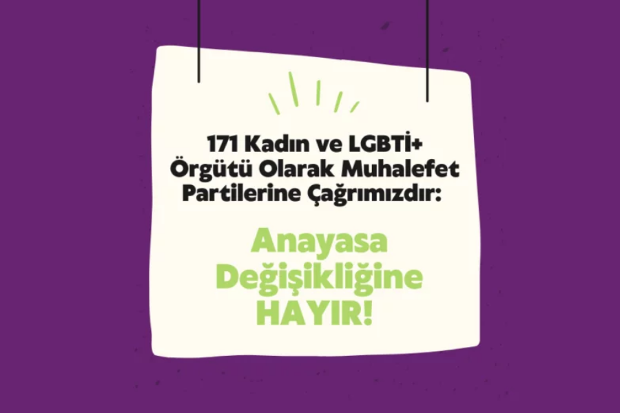 Türkiye’nin her bölgesinden kadın ve LGBTİ örgütleri ortak imza metni ile “Kadın ve LGBTİ+ Örgütleri Olarak Muhalefet Partilerine Çağrımızdır: Anayasa Değişikliğine HAYIR!” dedi. Bu çağrıda, Anayasa değişikliğinin, Anayasa’nın eşitlik ve insan haklarına saygılı olma ilkeleriyle temelden çeliştiğini ve ayrımcı olduğunu vurgulayarak itirazlarını şöyle ifade ettiler: