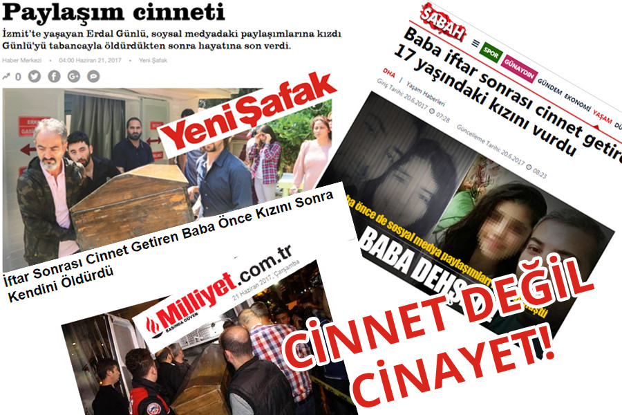 Kocaeli’nin İzmit ilçesinde 41 yaşındaki Erdal Güllü 17 yaşındaki kızı Rana Güllü’yü silahla başından vurarak öldürdü. Kızını öldürdükten sonra intihar eden katil babanın cinayeti ana akım medya tarafından cinnet olarak lanse edildi. Haberlerin bu şekilde görülüp failin cinayetinin haklılaştırılmaya çalışılmasına Cinsel Şiddetle Mücadele Derneğinden tepki geldi. CŞMD’den Şehlem Kaçar, “Olayın cinnet olarak ele alınması eylemin fail tarafından anlık bir şekilde elinde olmadan yapıldığına dair bir algı yaratıyor. Bu şekilde okuyucunun da olayı mazur görmesine sebep oluyor.” diye konuştu.