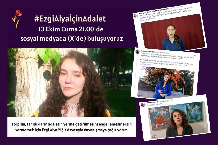 Kadınlar duruşma öncesi sosyal medyada #EzgiAlyaİçinAdalet etiketiyle kampanya başlattı. Paylaşımlardan bazıları şöyle:
