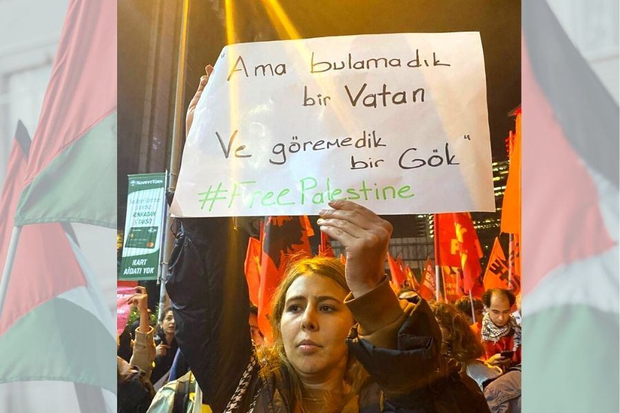 Farklı kesimlerden ve örgütlerden protestoya katılan Kadınlar hem Filistinli kadınlarla dayanışmak için hem İsrail'in Filistin'e karşı saldırılarına "dur" demek için alanda olduklarını Ekmek ve Gül'e aktardı: