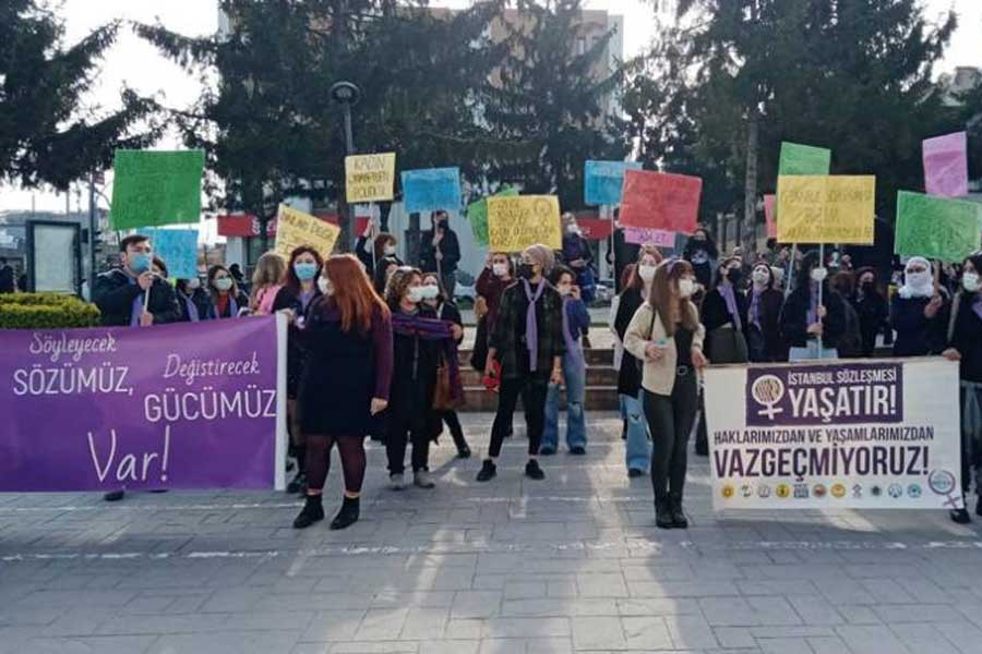 Hacıeyüpoğlu son olarak, “Kadınları şiddetten korumayı, şiddeti önlemeyi, ayrımcılığa karşı eşitliği savunan bir sözleşmeyi sizler tartışamaya açamazsınız. Sözleşme hakkında karar alamazsınız” dedi. Eylem, “Kararı geri çek sözleşmeyi uygula!”, “Kadın yaşam özgürlük” sloganları ardından son buldu.