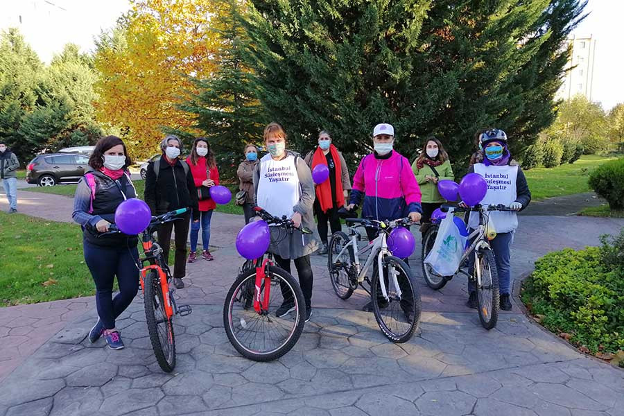 Şiddete karşı pedal çeviren Kocaeli İstanbul Sözleşmesi İnisiyatifinden kadınlar, 25 Kasım günü yapacakları yaşam zincirine ve basın açılamasına da çağrı yaptı.