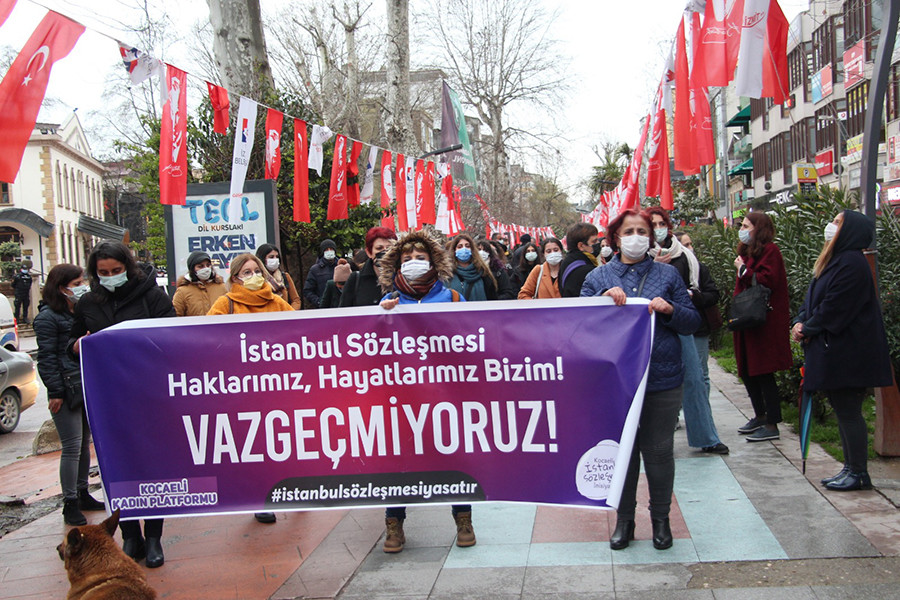 İstanbul Sözleşmesi’nin uygulanmaması sebebiyle bugüne kadar şiddet gören, tacize ve tecavüze uğrayan, öldürülen kadınların ve LGBTİ’lerin isimlerini haykıran kadınlar, İstanbul Sözleşmesi’nin hayati öneme sahip olduğunu ifade etti. İzmit’te Belediye İşhanı önünde bir araya gelen kadınlar, “Bir kişi daha eksilmeyene kadar kararlı mücadelemiz sürecek” dedi. Yapılan açıklamada, “Bizler bugün aynı sözleri tekrar tekrar söylememize rağmen bizi duymayanlarla İstanbul Sözleşmesi ve 6284 sayılı Yasa etkili biçimde uygulansa aramızda olacak arkadaşlarımızın hikâyelerini paylaşacağız. Sırayla isyanımızı, öfkemizi, kararlılığımızı anılarından aldığımız arkadaşlarımızın hikâyelerini okuyacak, ‘İstanbul Sözleşmesi bizim’ demekten vazgeçmeyeceğiz” denildi. Ardından her bir kadın, bugüne kadar şiddet gören, tacize ve tecavüze uğrayan, öldürülen kadınların ve LGBTİ’lerin isimlerini ve hikâyelerini haykırdı.