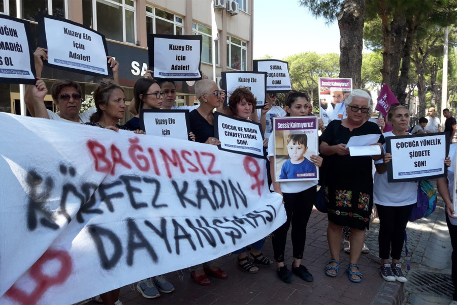Adliye önünde yapılan açıklamada Körfez Bağımsız Kadın Dayanışması adına konuşan Ömür İlgör, ülkemizde kadına ve çocuğa yönelik şiddet, taciz ve istismarın gittikçe arttığına dikkat çekerek Edremit Körfezi ve yakın çevresindeki Ayvalık ve Burhaniye’de son üç yıl içerisinde 7 kadının eşleri ya da yakınları tarafından katledildiğini söyledi. Bu katliamlara çocuk katliamlarının da eklendiğine işaret eden İlgör, geçtiğimiz aylarda da küçük Zeynep’in annesi Zeliha’nın yanında kurşunların hedefi olduğunu anımsattı. Son olarak altı ay önce küçük Kuzey Efe’nin Edremit’te babası tarafından boğularak öldürüldüğünü belirten İlgör “Geçen hafta Zeynep için adalet aradık, şimdi ise Kuzey Efe için adalet aramak amacıyla adliye önündeyiz” dedi.Kadın Cinayetlerini Önleme Platformu ve Kadın Meclisleri Balıkesir Oluşumu adına yapılan açıklamada ise son zamanlarda kadınların bunca yıllık mücadeleleri ile elde ettikleri haklarının ellerinden alınmaya çalışıldığı ifade edilerek kazanımlarımızı savunmaya ve mücadelemizi sürdürmeye devam edeceğiz vurgusu yapıldı.