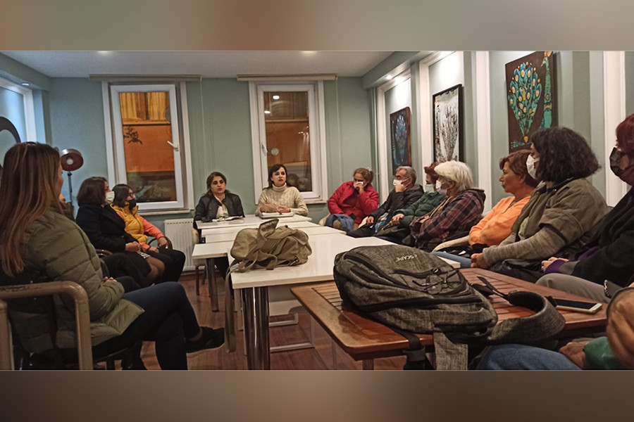 25 Kasım’a kadınları yan yana, birlikte mücadeleye çağırmanın önemine değinen konuşmacı ve katılımcılar, 25 Kasım’a kadar çeşitli etkinliklerle talepleri ve mücadeleyi büyütmek için yan yana geleceklerini ifade etti.