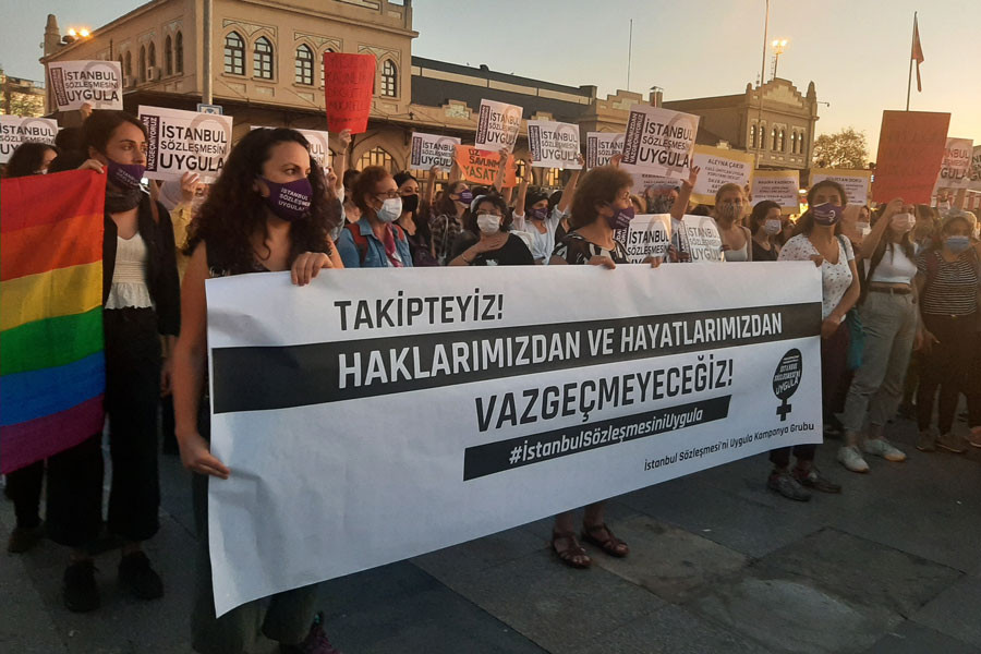 Haklarımızdan Vazgeçmiyoruz, İstanbul Sözleşmesi’ni Uygula Kampanya Grubu çağrısıyla Kadıköy-Eminönü İskelesi önünde toplanan kadınlar, iktidarın İstanbul Sözleşmesi’nden çekilme çabasına tepki gösterdi. Haklarımızdan Vazgeçmiyoruz, İstanbul Sözleşmesi’ni Uygula Kampanya Grubu adına yapılan açıklama da, “İstanbul Sözleşmesi’ni tartışmaya açanlara sözümüz var: Haklarımız pazarlık konusu değil. Haklarımızdan da hayatlarımızdan da vazgeçmeye niyetimiz yok” denildi.