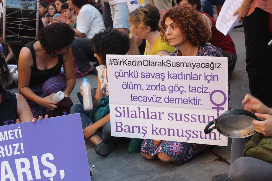 Türkiye’nin Suriye’nin doğusuna ve kuzeyine dönük askeri operasyonu başladı. ‘Sınır güvenliği ve Suriyeli mültecileri yerleştirmek için koridor açma’ gerekçesiyle girişilen harekata karşı birçok kesimden tepki geldi. ‘Barış Pınarı Harekatı’ olarak adlandırılan operasyona kadınlardan yükselen ses ise “Savaş değil, barış; ölüm değil, yaşam” oldu.