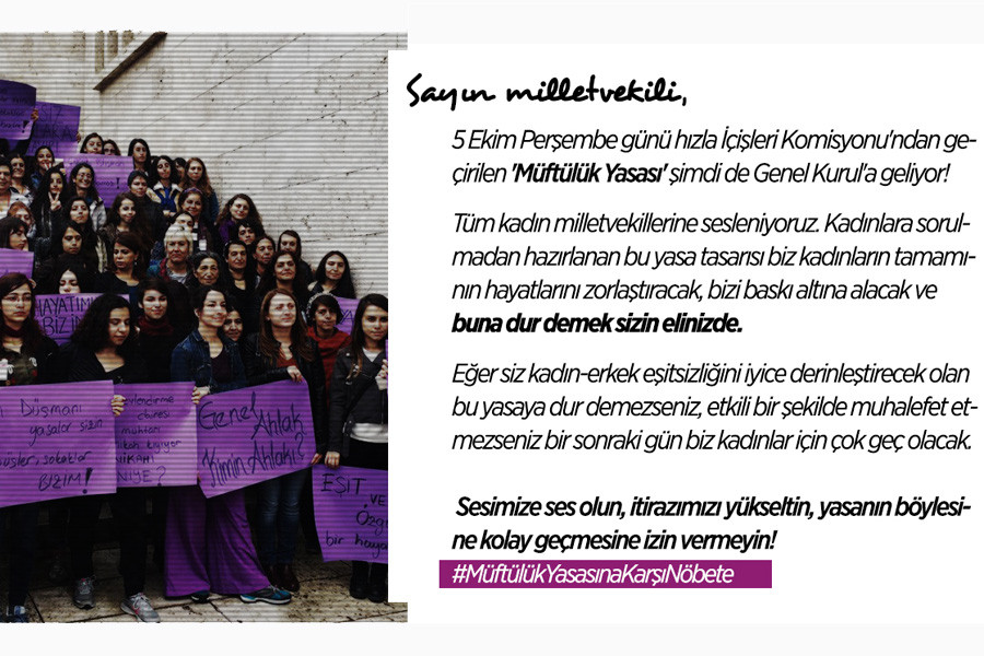 Erkeklerin bizlere sormadan yazdığı ve hayatlarımız hakkında kararı yine çevremizdeki erkeklerin eline bırakan bu tasarı yasalaşmamalı, müftülüklere resmi nikah yetkisi verilmemeli..