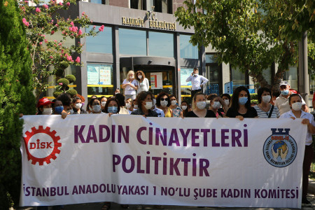 DİSK/Genel-İş İstanbul Anadolu Yakası 1 No’lu Şube üyesi kadın işçiler Kadıköy Belediyesi önünde düzenledikleri eylemle hükümetin İstanbul Sözleşmesini tartışmaya açmasını protesto etti.