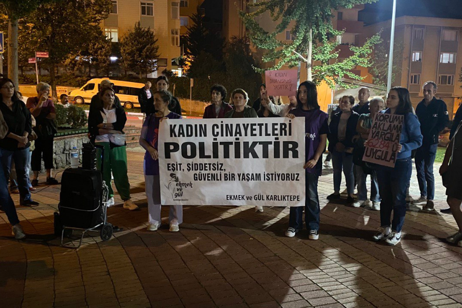 İstanbul'un Kartal ilçesinin Karlıktepe Mahallesi’nde, Karlıktepe Ekmek ve Gül grubunun çağrısıyla bir araya gelen kadınlar, kadın cinayetlerine ve cezasızlık politikalarına karşı basın açıklaması yaptı.