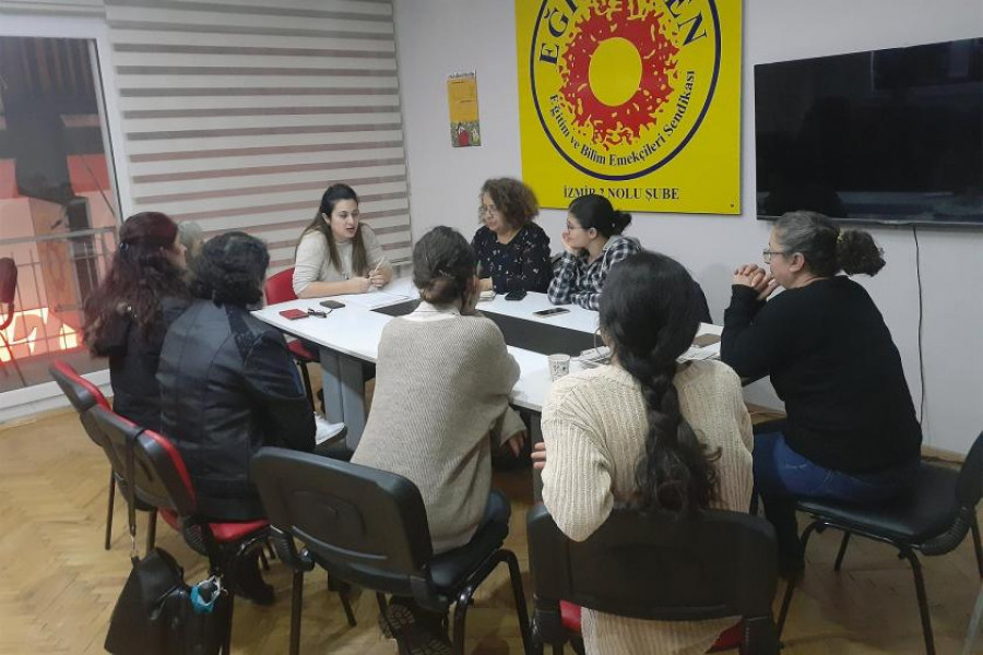 25 Kasım Kadına Yönelik Şiddetle Mücadele Günü dolayısıyla Karşıyaka'da Ekmek ve Gül okurları kadınlar bir araya gelerek çocuk istismarı affına, nafakanın gasbına karşı mücadelenin önemini konuştular. Avukat Nurdan Torun'un katılımı ile Eğitim Sen 2 No’lu şubede buluşan kadınlar hukuki haklar konusunda da bilgilendirildi.