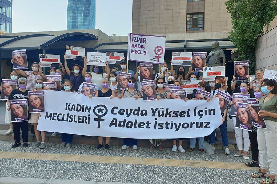 Karabağlar Kent Konseyi Kadın Meclisi Şiddetle Mücadele Grubu adına konuşan Funda Özdemir ise, “Sadece Temmuz ayında 20 kadın cinayeti, 12 şüpheli kadın ölümü gerçekleşti. İstanbul Sözleşmesinden çekilmek için yoğun çaba sarf edenler kadın cinayetlerini durdurmak için kılını bile kıpırdatmıyorlar. Failler serbest bırakılıyor, cezasızlıkla beraber kadın cinayetleri ve şüpheli ölümler de giderek artıyor” dedi. Yasaların etkin şekilde uygulanmasını isteyen Özdemir, “Tüm engellemelere karşı Ceyda Yüksel ve öldürülen tüm kadınlar için adalet mücadelemiz devam edecek” diye ekledi.