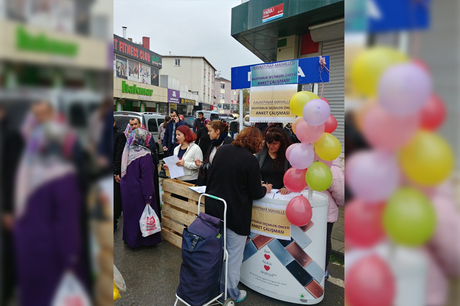 Pendik Kavakpınar Mahallesi’nde Kadın Muhtar Adayı Destekleme Grubu tarafından geçen hafta mahallelinin ülke ve mahalle gündemine dair görüşlerinin alındığı bir anket çalışması gerçekleştirildi. Pazar girişine kurulan standda yapılan ankette birçok mahalleli kadın ve erkekle yüz yüze görüşülüp, katılımcıların sözlü yorumları dinlenirken; ekonomik gidişatın halk üzerindeki olumsuz etkisi anket sonuçlarına ve anket katılımcılarının sözlü taleplerine yansıdı. Ankete ortaokulda okuyan kızı ile birlikte katılan ve kendini sağcı olarak tanımlayan bir işçi hayat pahalılığı, eğitim sistemi ve belediyeye dair tepkisini dile getirdi. “Kadın bir muhtar adaya nasıl bakıyorsunuz?” sorusuna kadınlar da erkekler de sıcak baktıkları cevabını verdi. Bu durum anket sonuçlarına da yansıdı.