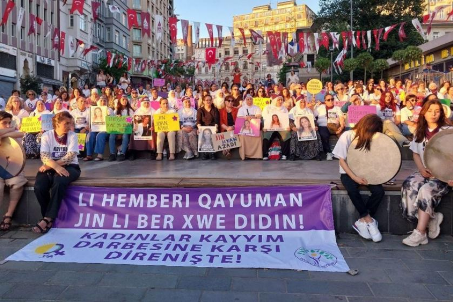 Ekmek ve Gül'den Elif Turgut, kayyumun kadınların haklarını doğrudan gasbetmesi anlamına geldiğine dikkat çekerek, "Bakanlık kendine bağlı sığınma evlerini son 6 yılda 6 tane bile artırmazken belediyelerin açtığı sığınma evlerine kayyum atayarak kapatıyor. Öncelikli olarak kayyumların en yakıcı sonucunu yine kadınlar yaşıyor. Verilen örneklerde de gördüğünüz gibi kadınlara ve çocuklara verilen hizmetler ilk olarak hedef alınıyor. Bugün aslında kayyum rejimine karşı çıkmak demek, bir yandan da kadınların kentlerde güvenle yaşaması için mücadele etmek anlamına geliyor. Hakların gasbedilmesine karşı, irademizin gasbedilmesine karşı, eşit, özgür, demokratik bir ülke mücadelemizi sürdüreceğiz. Kayyumlara karşı çıkacağız. İrademizi gasbedenlerin karşısında mücadelemizi sürdüreceğiz" dedi.