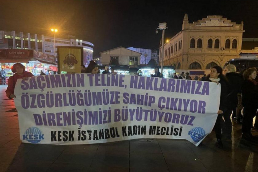 Daha sonra sendika binasından çıkarak bir mekana oturmaya gittiklerini söyleyen KESK’li kadınlar polis takibinin mekan girişine kadar devam ettiğini ifade etti.