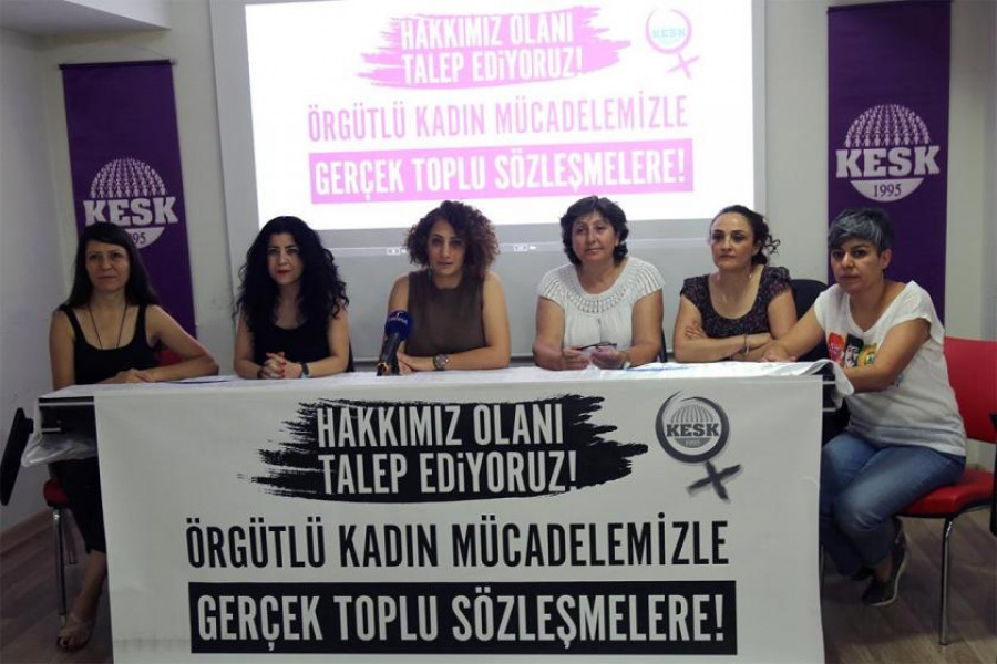 5 milyon kamu emekçisi ve emeklisini ilgilendiren toplu sözleşme görüşmeleri 1 Ağustos’ta başlıyor. KESK, kadınların toplu sözleşme taleplerini açıkladı. “Hakkımız olanı istiyoruz” diyen KESK Kadın Sekreteri Gülistan Atasoy, kadın taleplerinin ayrı bir başlıkta ve gündemle ele alınmasını ve kadın temsiliyetinin masaya yansımasını istedi. Kreş talebinde ısrarcı olduklarının altını çizen Atasoy’un paylaştığı talepler arasında, kadınlara doğum öncesi 8 hafta, doğum sonrası 24 hafta olmak üzere en az 32 hafta ücretli doğum izni verilmesi, doğum sonrası ücretli-ücretsiz izin, süt izni kullananların sosyal ve özlük hak kaybı yaşamaması, işyerlerinde kadına yönelik şiddete, mobbinge, ayrımcılığa karşı mekanizmalar oluşturulması yer alıyor.
