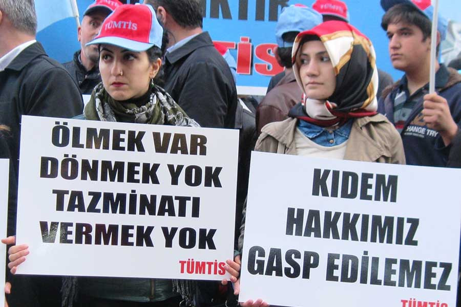 12 yıldır temizlik işçisi olarak çalışan Uriye Taşkıran ise “Bir oğlum kiracı, diğeri işsiz, elimizden geldiği kadar biz destekliyoruz. Bu yaşımda onun için çalışıyorum, azıcık daha iyi yaşayabilmek için. İşçinin beş kuruş parasına göz dikiyorlar. Parasız kaldıkça kıdeme sarıyorlar. Bizim geleceğimiz, niye verelim kıdem hakkımızı. Bizim de çocuklarımız var, yarın bir gün emekli olduğumuzda o paraya bağlıyoruz geleceği” diye anlatıyor durumlarını.