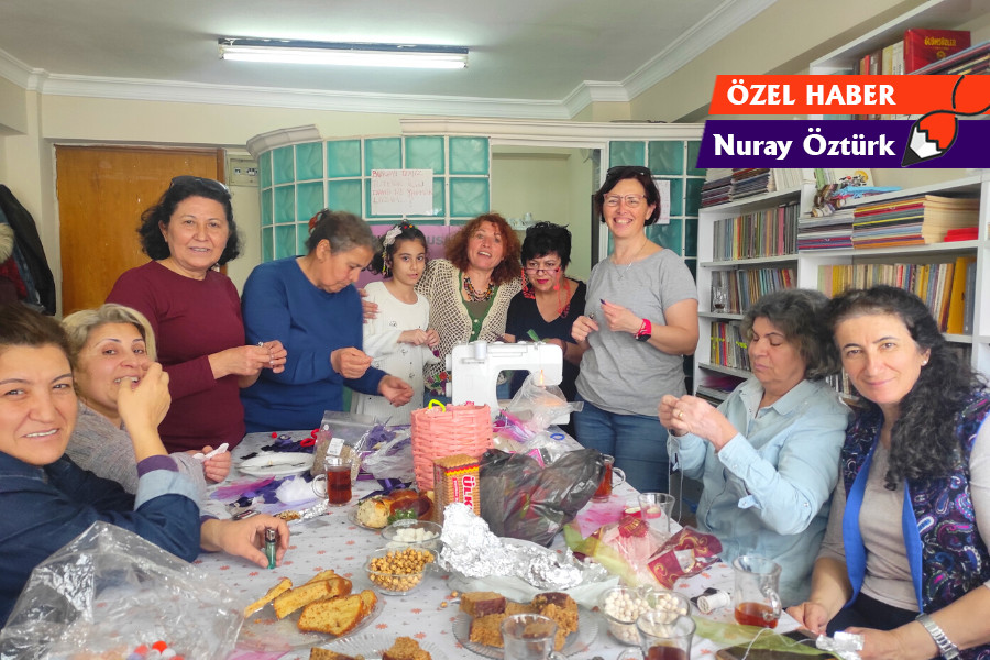 Bornova Kadın Dayanışma Derneği ve Ekmek ve Gül grubundan kadınların katılımıyla gerçekleşen atölye çalışmasına Antep ve Malatya’dan ilimize gelen depremzede kadınlar da katıldı. Depremin üzerinden iki ayı aşkın süre geçmesine rağmen devletten bir gıda paketi dışında yardım almadığını söyleyen Antepli depremzede Nazlı, “İzmir’e geldikten sonra kaymakamlıktan aradılar, küçük bir paketin içinde birer ikişer gün idare edecek bir şeyler getirdiler. Geçenlerde de bin lira hesabıma para yatırdılar, belediye mi yatırdı kaymakamlık mı bilemiyorum. Başka bir yardım görmedim. Kızımın evinde kalıyorum şuan” diyerek depremzedelere geldikleri illerde de doğru düzgün yardım ulaşmadığını dile getirdi.