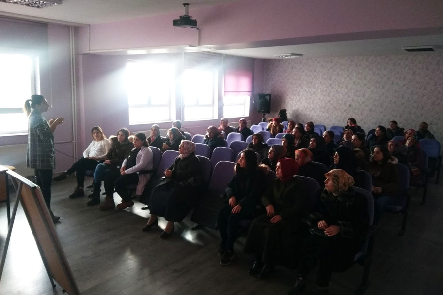 Tavşantepe İbrahim Süreyya Yiğit İlköğretim Okulu'nda mahalleden çok sayıda kadının katıldığı seminerde, Birgül Yiğit, çocuklarla etkili ve doğru iletişimin nasıl kurulabileceğini, çocuğun ve annenin arasında sağlıklı diyalog nasıl olacağını, iyi ve kötü dokunma ayrımının çocuğa nasıl öğretileceği konularında bilgiler verdi.