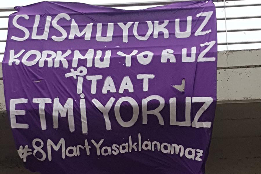 Kocaeli Kadın Platformunun düzenleyeceği yürüyüşe yasak kararının getirilmesinin ardından kadınların Valiliğe cevabı şehrin belirli yerlerine astıkları pankartlarla oldu. Köprülere ve üst geçitlere pankart asarak tepkilerini dile getiren kadınlar, “İtaat etmiyoruz” dedi.