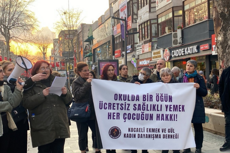 Kocaeli Ekmek ve Gül Kadın Dayanışma Derneği, Milli Eğitim Bakanı Yusuf Tekin’in bir öğün ücretsiz sağlıklı yemek talebi için yaptığı açıklamaya tepki gösterdi. Bakan Tekin öğrencilerin verilen yemekleri yemeyeceğini iddia ederek "Çocuklarımızın yeme alışkanlıkları buna uygun değil. Biz şuanda deprem bölgesiyle beraber taşıma kapsamındaki öğrencilerimize, yani yaklaşık 3 milyona yakın öğrenciye yemek veriyoruz ama onun dışındakiler ile ilgili şu an bir çalışmamız yok” dedi. Bu açıklamaya tepki gösteren Kocaeli Ekmek ve Gül Kadın Dayanışma Derneği ise Bakan Tekin’e MEB bütçesinin neden öğrenciler için harcanmadığını sordu. Ekimde açılacak Meclise çağrı yapan dernek “Taleplerimizi kazanıp çocuklar hakkını alana kadar mücadele etmekten vazgeçmeyeceğiz. Her çocuğa bir öğün ücretsiz sağlıklı yemek için, MEB tarafından okullara temizlik personellerinin görevlendirilmesi için, tüm Kocaelili kadınları bir araya gelmeye çağırıyoruz. Çocuklarımızın hakkı olanı gelin birlikte kazanalım” dedi.