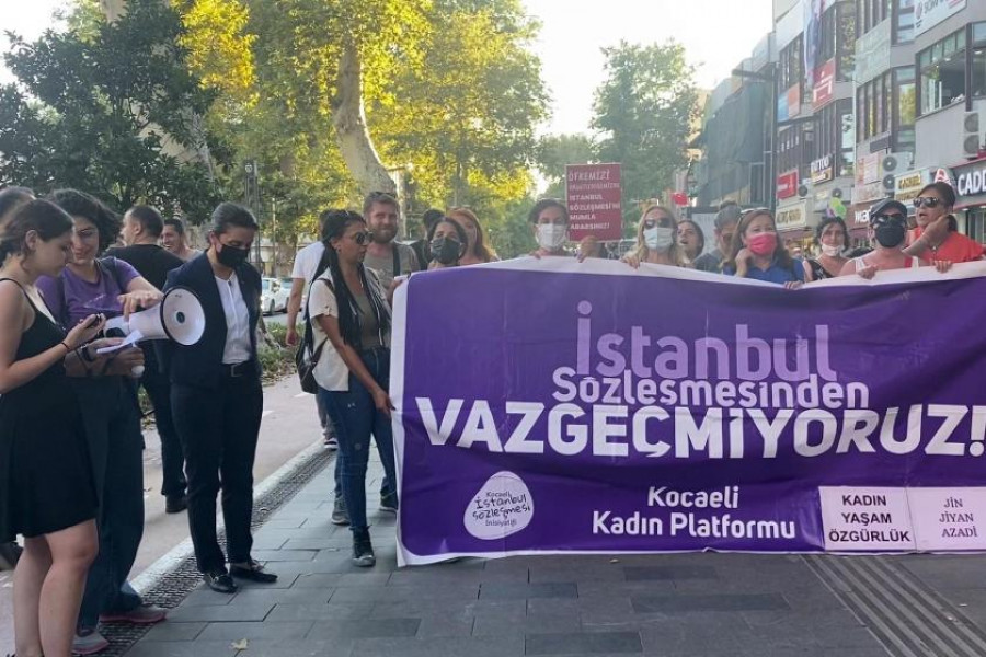 Kocaeli Kadın Platformu ve Kocaeli İstanbul Sözleşmesi İnisiyatifi üyeleri, Danıştay’ın İstanbul Sözleşmesi kararını basın açıklamasıyla protesto etti.
