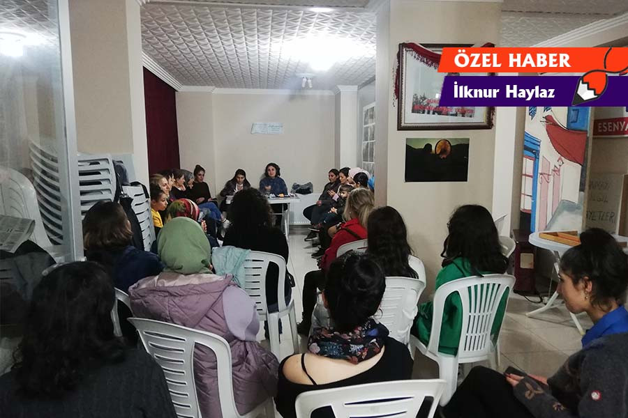 Dernekte çember şekilde oturdu 30 kadın. Hepsi bir şeyler demek istiyor belli. İran'da yaşanan olaylarla Türkiye'ye de yaşanan olayların benzediğini kadınların yüzlerinden okuyabiliyorum bile. Fulya Alikoç sözü alarak İran'ın tarihini anlatmaya başlıyor. Kadınlar sessiz, sadece anlatılanları dinliyorlar ama konuşmak için de can atıyorlar. Alikoç, İran'da en çok atılan sloganın "İtiraz değil, devrim" olduğunu söylüyor. Birkaç kadın da gülümsemesini tutamıyor.