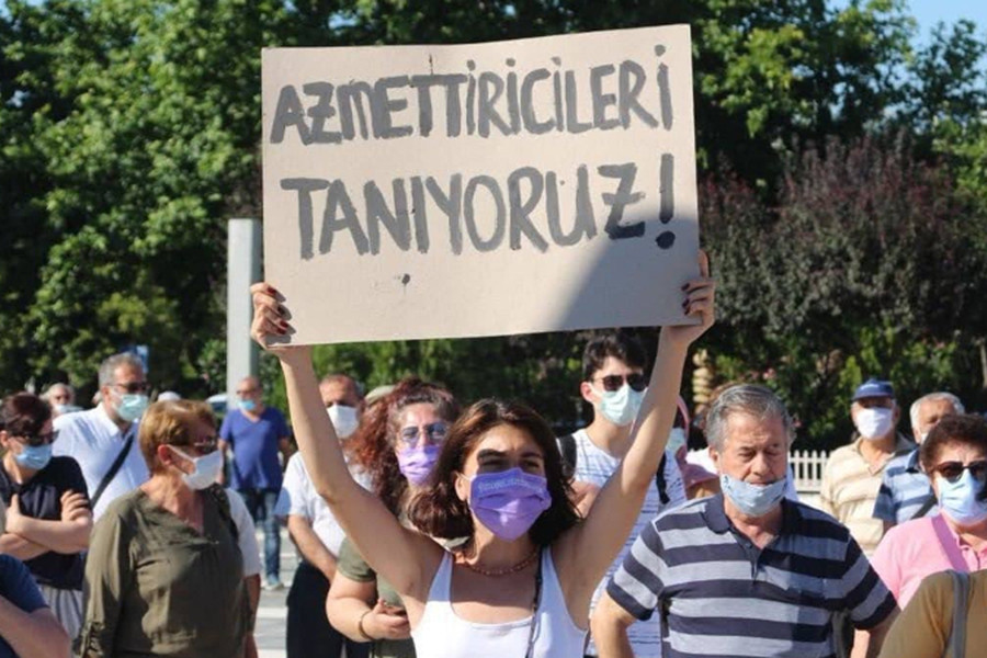 ‘Deniz Poyraz, çocuklarının gözü önünde öldürülen Hafize Kurban isyanımızdır. İstanbul Sözleşmesi’nden değil önümüzden çekilin İstanbul Sözleşmesi’nden vazgeçmeyeceğiz.’