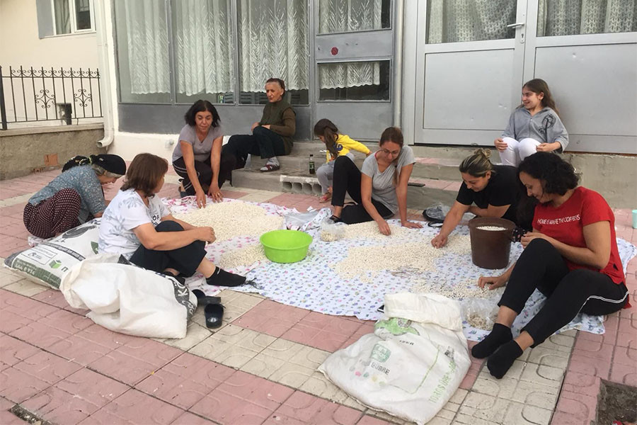 Mamak’ta emekçilerin yoğun yaşadığı bir sokaktan geçerken yere oturmuş işlerini yapan, sohbet eden kadınları görüyoruz. Bir şey ayıklıyorlar. Yaklaşıp, soruyoruz kadınlara: “Bu kadar çuval fasülyeyi ne yapacaksınız?” diye. Kadınlar hep bir ağızdan ekonominin kötüye gittiğini hazırlık yaptıklarını anlatıyorlar. Kimisi “ Çocuk okutuyoruz. Bu zamanda kolay değil” diyor.