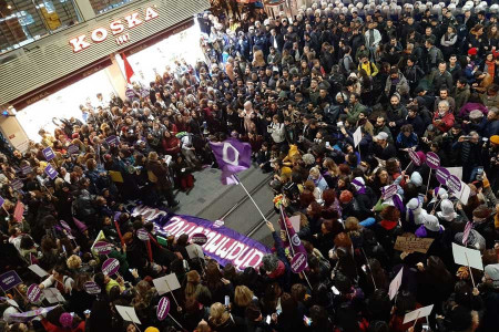 Kadınlar olarak evde, işyerinde, okulda, sokakta yani her yerde şiddete uğruyoruz. Öyle ki gözler önünde, “Ölmek İstemiyorum” çığlıkları arasında kız kardeşlerimiz katlediliyor. Ve şiddet sadece ölüm olduğunda görünür oluyor. Ancak biliyoruz ki, ekonomik kriz, kutuplaştırıcı siyaset, savaş, cinsiyetçi eğitim politikaları, kadını aşağılayan her bir söylem kadına yönelik şiddeti katmerlendiriyor. Biz kadınlar her gün bu şiddet sarmalı içerisinde yaşamaya, ayakta kalmaya çalışıyoruz. Yetmiyor, şiddete karşı kadını koruyan, güçlendiren yasalar hedef tahtasına konuluyor. Öte yandan intihar vakalarının da gösterdiği gibi ekonomik kriz yüzünden şiddet ortamı daha da derinleşiyor. Kadınlar olarak hem daha çok sömürü anlamına gelen esnek çalışma biçimlerine, işten atılma tehdidine, mobbinge hem de yoksulluk ve çaresizlik yüzünden daha çok şiddete maruz kalıyoruz. Biliyoruz ki tüm bu saldırılar ve şiddet sarmalı, bu şiddet ancak birleşik bir mücadeleyle yıkılabilir.