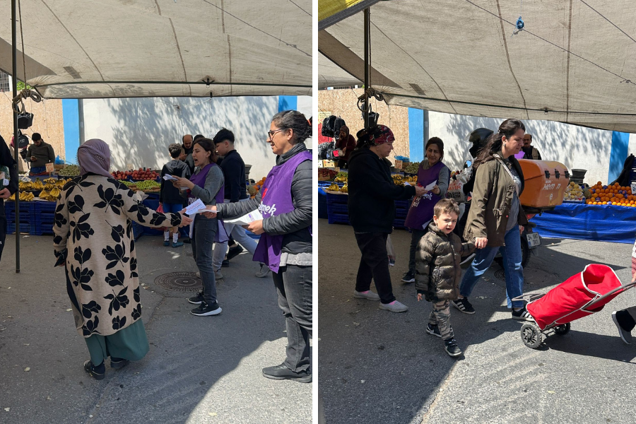 Kadın işçilerin güvenceli iş, eşit ücret ve insanca koşullarda yaşamak talepleri doğrultusunda başlatılan "barajsız sendika, yasaksız grev, güvenceli iş" kampanyası kapsamında stant açarak imza topladılar.