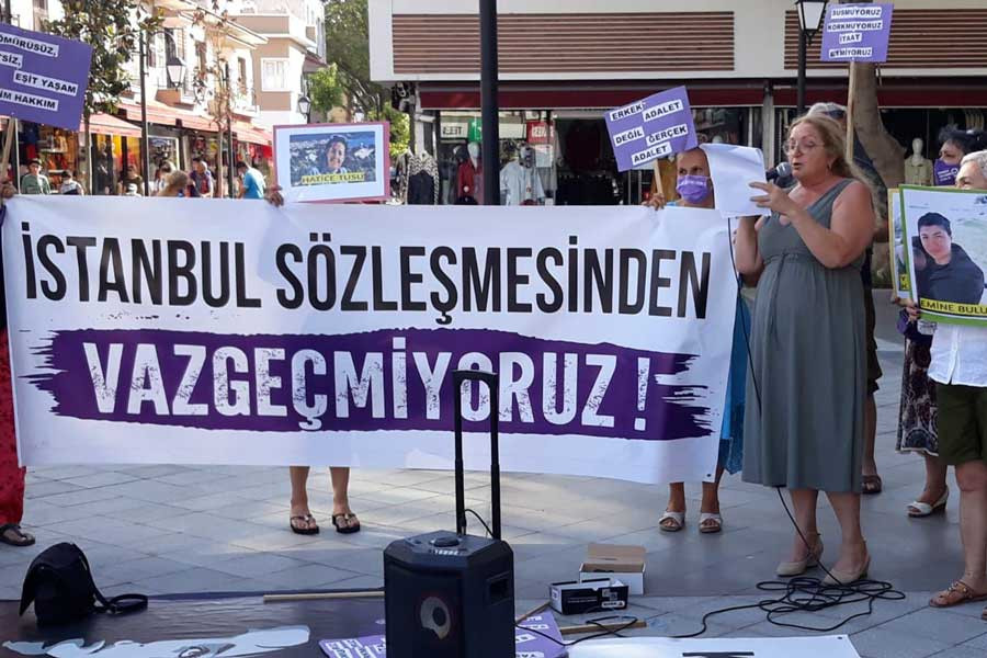 Bugün bir kez daha sokağa çıkan Kuşadası Kadın Platformu “İstanbul Sözleşmesi’nden vazgeçmeyeceğiz” dedi.