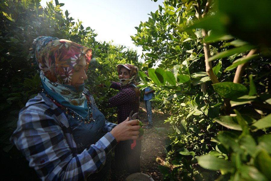 İşçilerin çoğunluğunu oluşturan kadınlar da hasadın başlamasıyla birlikte evlerini geçindirmek için sabahın ilk ışıklarıyla bahçelerin yollarını tutuyor. Erken saatlerde bahçelere gelen kadınlar yere yakın limonların toplanmasının ardından metrelerce yükseklikteki dallardakilere de merdiven yardımıyla ulaşıyor. Özenle saplarını kestikleri olgunlaşmış limonları küfelere dolduran kadınlar, ürünlerin üzerilerindeki lekeleri de tek tek temizliyor.